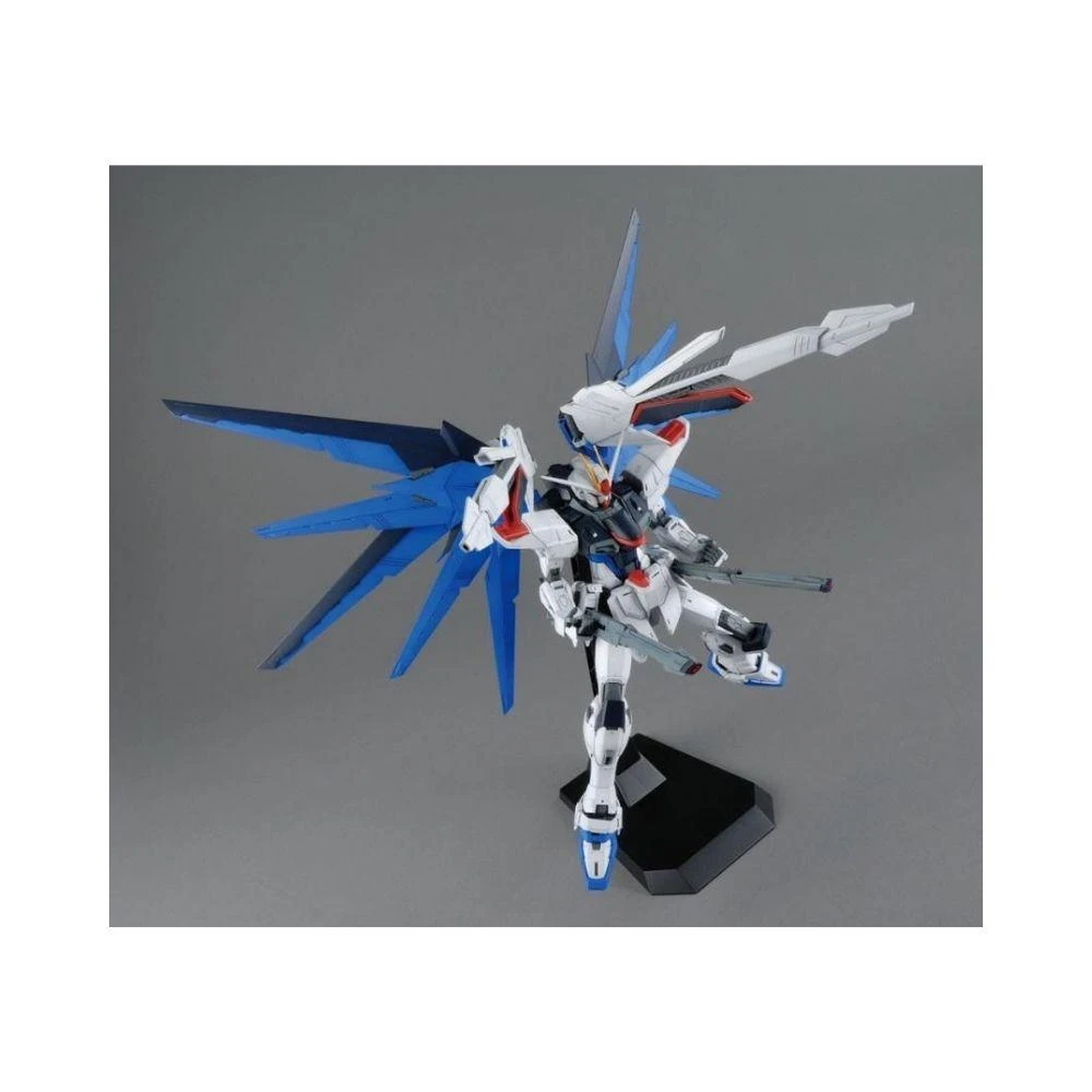 An updated version of the Freedom Gundam from “Gundam Seed” that features stylized detail and proportion influenced from the MG RM Aile Strike Gundam. All weapons have carefully recreated including beam rifle, beam sabers that can combine, rail cannons, and plasma cannons. Sliding armor panels in thighs and forearms and flip open hatches in wings allow new possible dynamic display options. Display stand included. Runner x 16, Dry Transfer, sticker, instruction manual.
