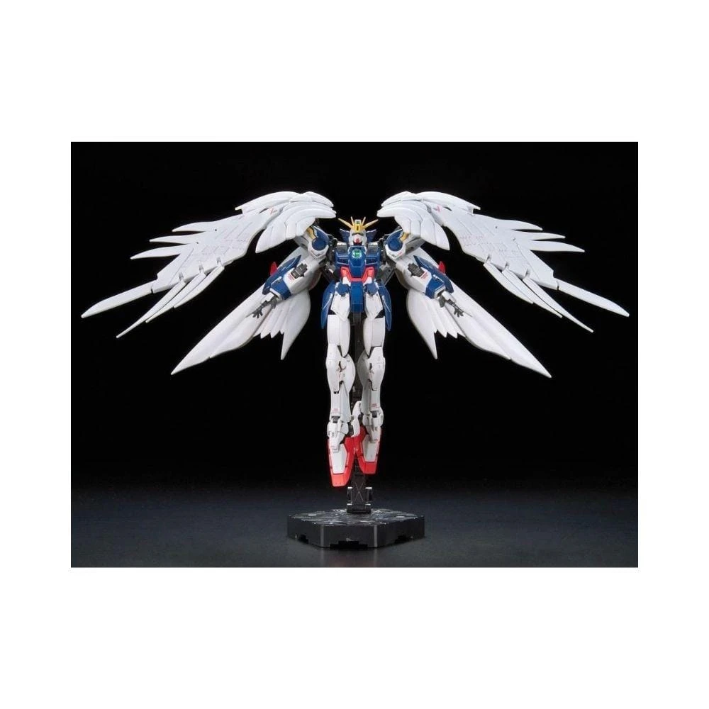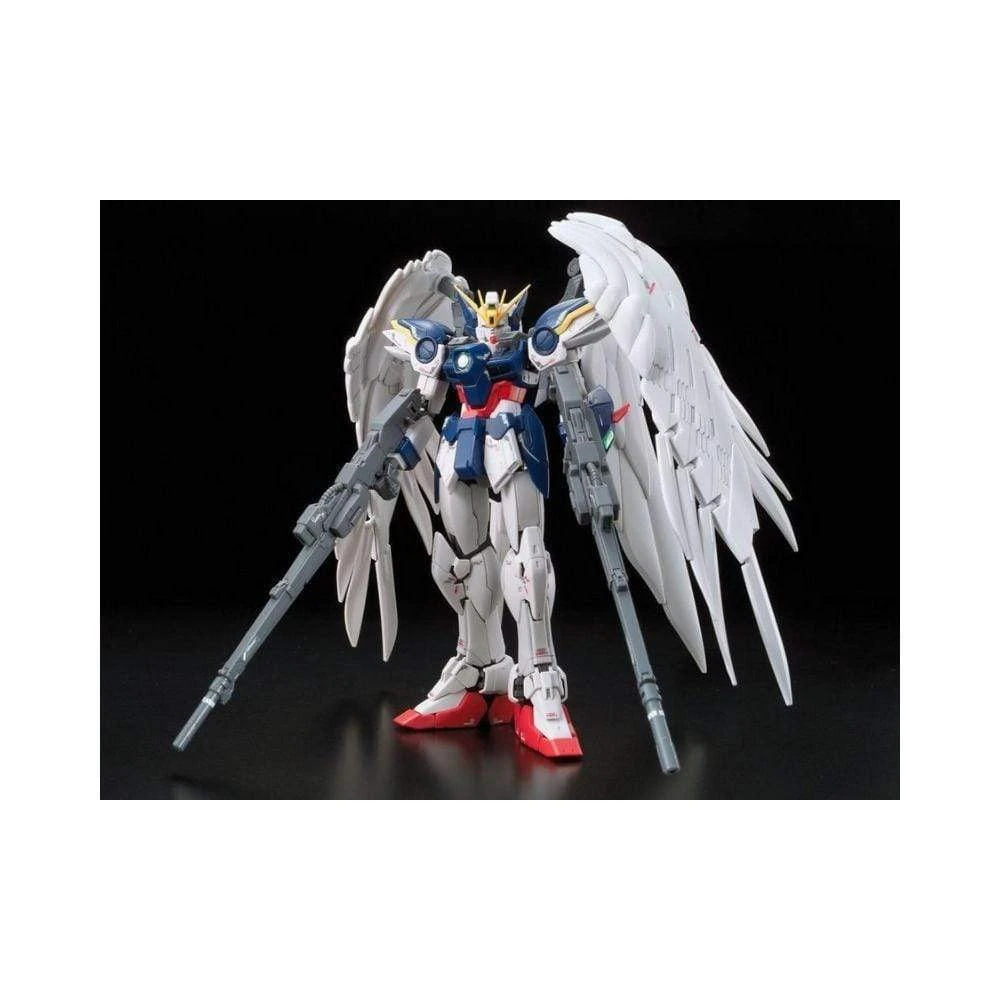 The Wing Gundam Zero Endless Waltz model kit joins the 1/144 scale Real Grade line up and becomes a fully articulated figure when completed. This version of the Wing Gundam Zero EW is built on a “Zero Frame,” which allows for amazing posability. Some of the feathers on the models wings are also posable thanks to unique joints. The model comes with two buster rifles which can be joined to form one giant weapon.