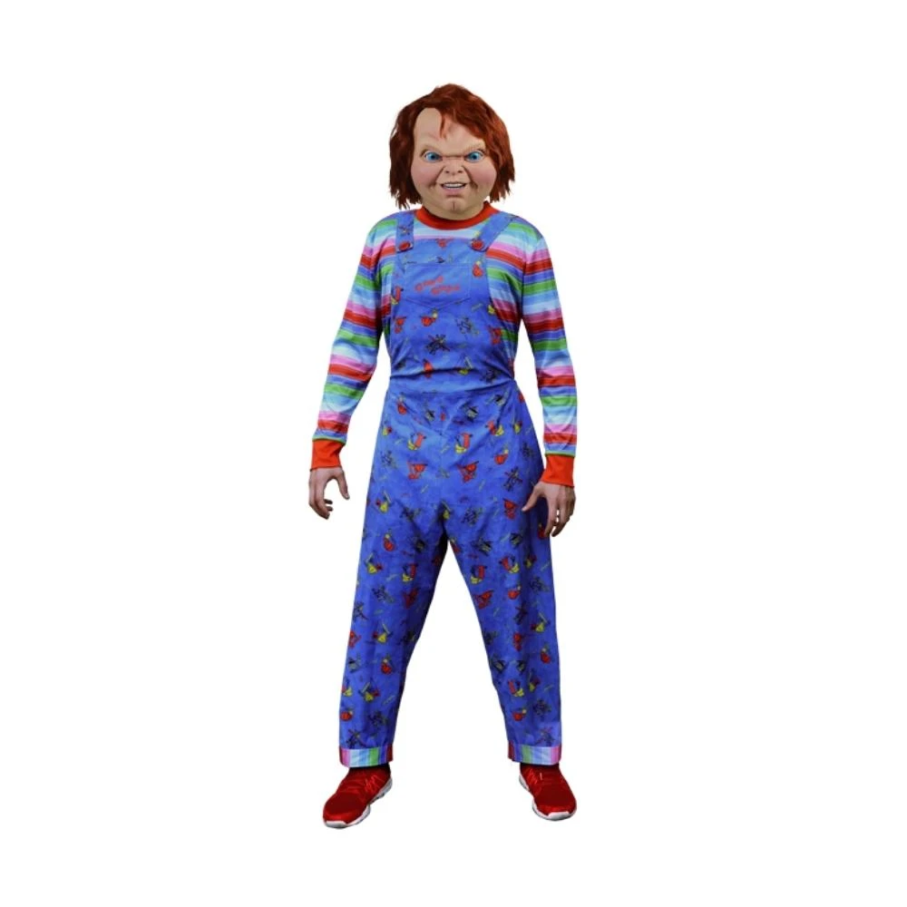 This costume was designed by laser scanning actual screen used swatches from the Good Guys Doll making it the most accurate Child’s Play costume ever produced. For the first time ever, the Coveralls are made from real corduroy, just like the Coveralls on the actual doll in the movie!