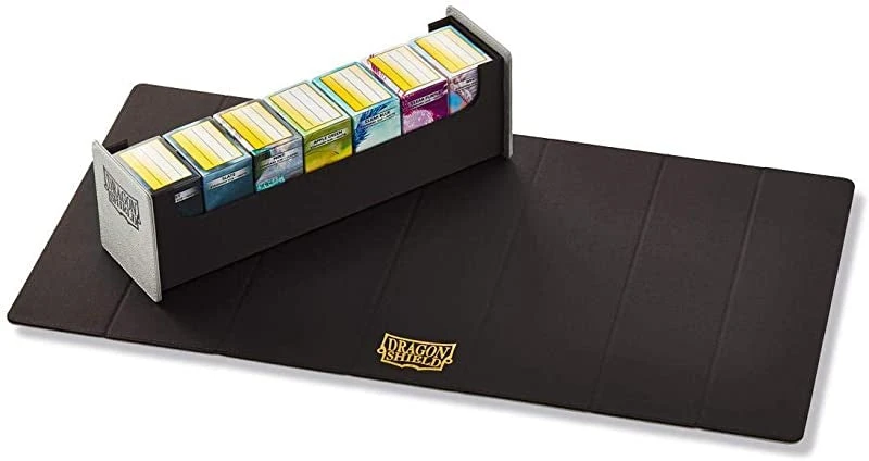 The Dragon Shield ‘Magic Carpet’ storage box offers an easy and stylish way to store and transport your cards. It combines elegant design and a strong magnetic seal for premium protection. The exterior can be separated from the storage tray and used as a Playmat, so you always have one handy, when you are transporting your cards.