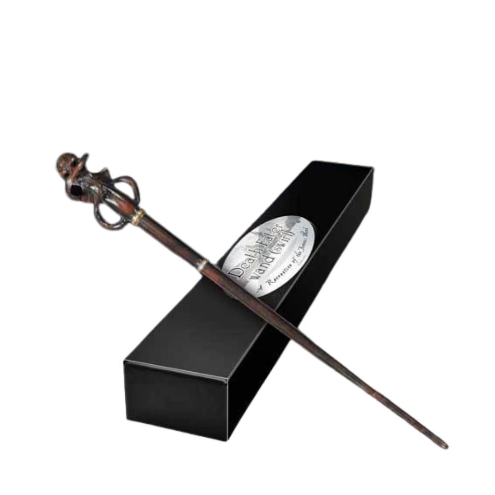 A Death Eater’s wand in a swirling design, similar to the Dark Mark. Character box contains name clip. Wand measures approx 35cm.