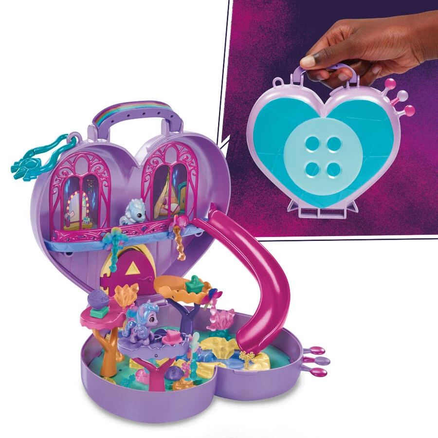 The scene accessories and pony figures can be inserted into the scene carrying box to create an exclusive pony mini world, some accessories can be put into water and will change color