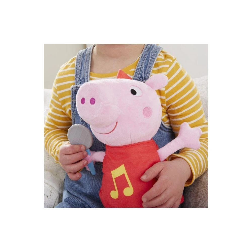 Peppa Pig loves to sing, and with the Oink-Along Songs Peppa plush doll, children can sing along with her! Inspired by Entertainment One UK’s acclaimed animated series, this 28-cm Peppa Pig doll is soft for cuddling and comes with a microphone accessory for singing. Want to hear her songs? It’s easy! Just press her tummy to hear her sing, speak, laugh (snort!) or oink! She sings three songs and says three phrases pre-schoolers might remember from her TV programme. Children aged 3 and up will love acting out scenes from the programme or dreaming up their own musical adventures for this plush, lovable doll!