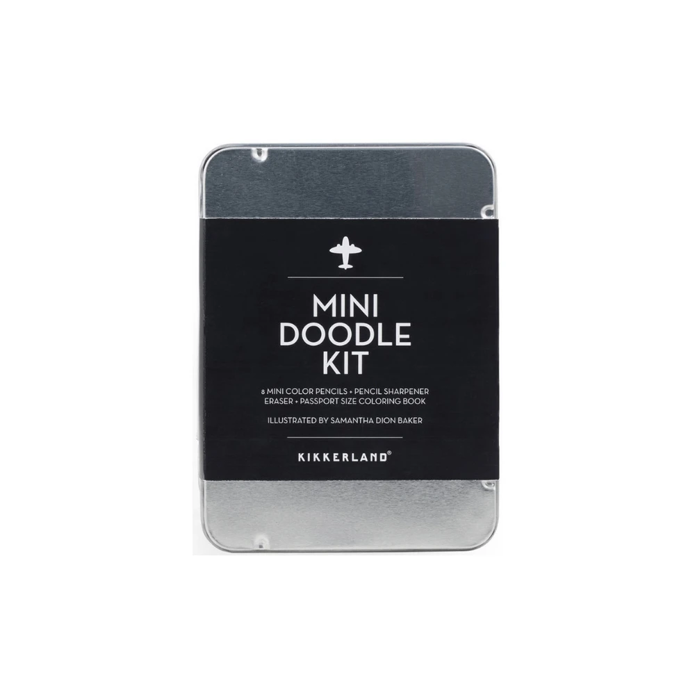 This Kikkerland Mini Doodle Kit is a passport sized tin filled with essentials for on-the-go coloring. Samantha Dion Baker created 18 illustrations printed on acid-free paper. In addition to the illustrations, Doodle comes with 8 mini colored pencils, a pencil sharpener, and an eraser. UPC 612615080874