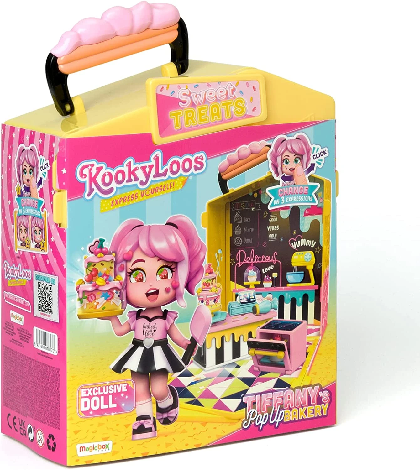 KOOKYLOOS Tiffany’s Pop Up Bakery – Bakery with over 15 accessories and exclusive doll with 3 fun expressions, Includes exclusive clothing and shoes, oven, table/fridge and turntable.