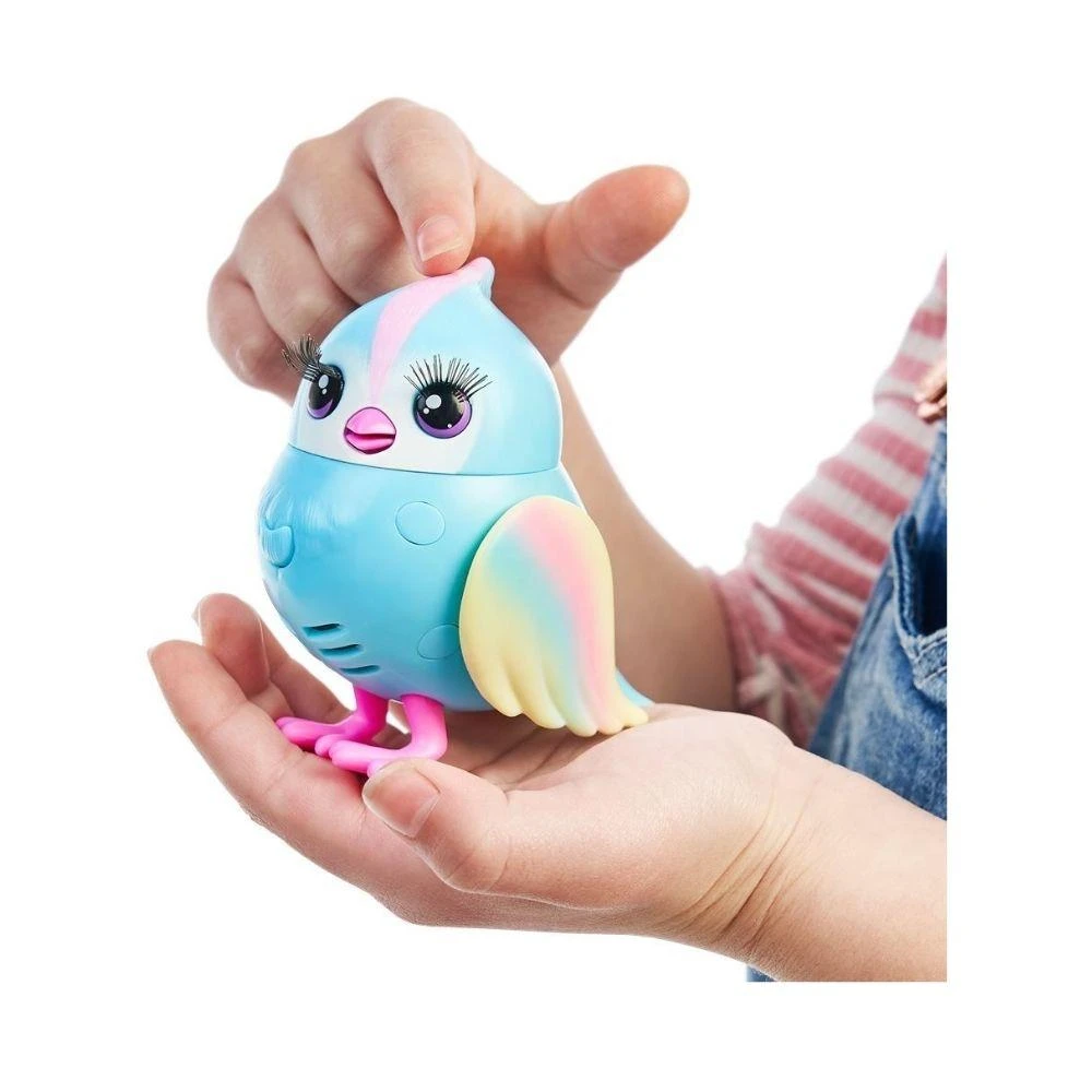 Lil ‘Birds the cutest birds you can imagine! These adorable little round birds with big, beautiful eyes come to life in your hands when you cuddle with them. Gently stroke your Lil ‘Bird Rainbow Tweets over your back and it will chirp and turn on its head! It responds to your touch! The more you cuddle with it, the happier Lil ‘Bird will be!