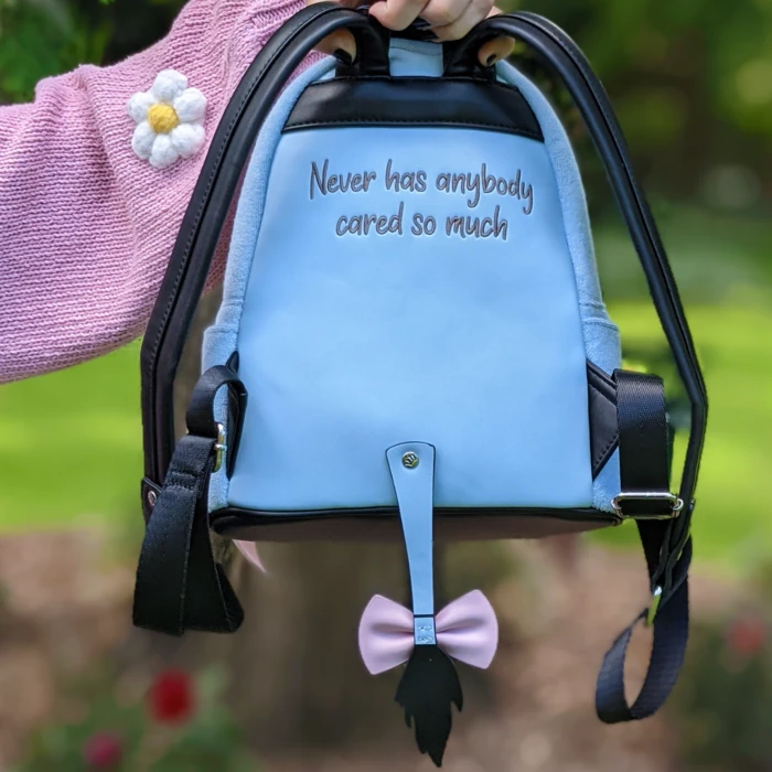This adorable mini backpack by Loungefly is made to look like Eeyore’s face on the front and features a moving tail on the back, complete with his pink bow! His die-cut ears and tuft of hair are appliqued to the front as well, while beautiful embroidery work throughout breathes so much life into the design.