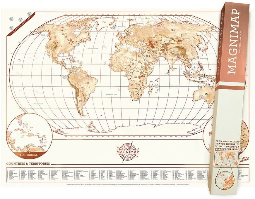 Printed on flexible magnetic paper, the Magnimap is the best way possible to keep track of your travels (alongside scratching, of course).