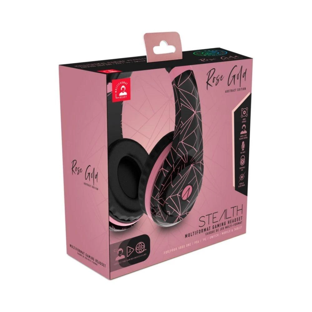 The STEALTH ROSE GOLD Gaming Headset is a truly fashionable accessory. Perfect for Gaming at home, on the move or for listening to music on the go. Includes flexible/removable Mic. Perfect for chatting with your squad during online sessions. The lightweight frame and enhanced comfort features provide a long lasting, enjoyable experience, essential for extending gaming sessions. Can be used with Xbox ONE, PS4, Nintendo Switch & PC.