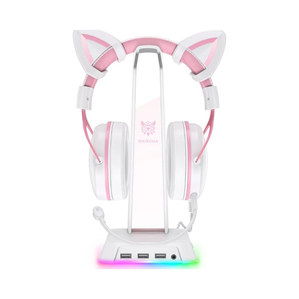 ONIKUMA Headset Display Stand ST-2 with 3 USB+Audio Port Headphone Support Earphone Desk Hanger Holder Storage Accessory