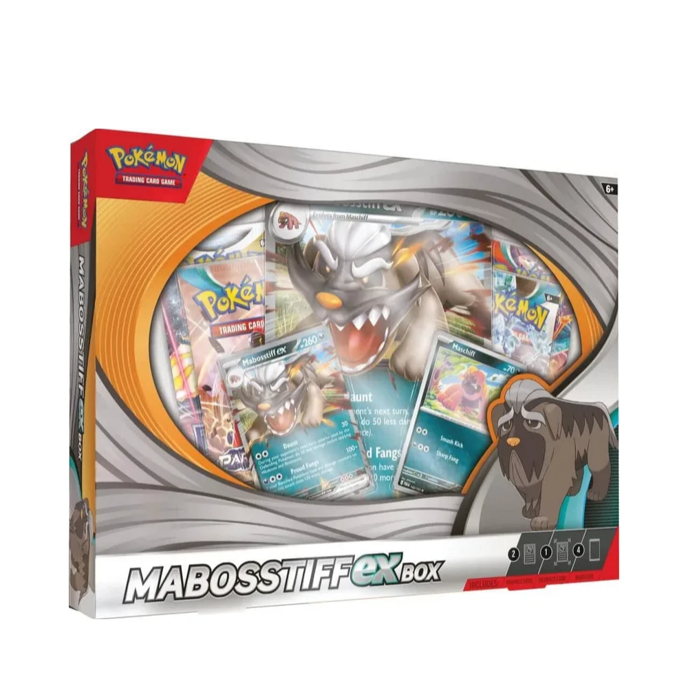 The Pokémon TCG: Mabosstiff ex Box includes: