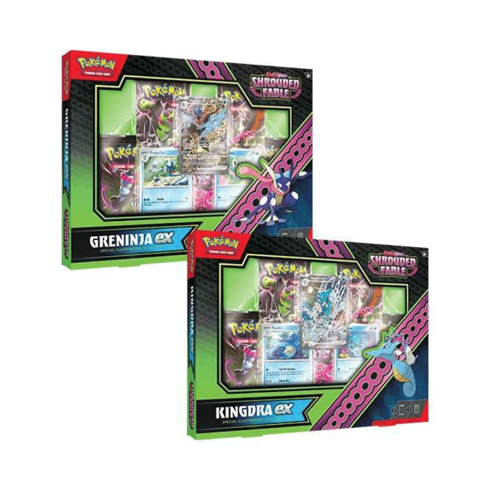 The Pokémon TCG: Scarlet & Violet—Shrouded Fable Kingdra ex/Greninja ex Special Illustration Collection includes: