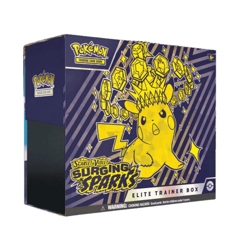 Unleash the power of your deck with the Pokemon TCG Scarlet & Violet Surging Sparks Elite Trainer Box EN! With exclusive cards, dice, and more, this box gives you the tools you need to become a true Pokemon Master. Don’t miss the opportunity to ignite your collection!