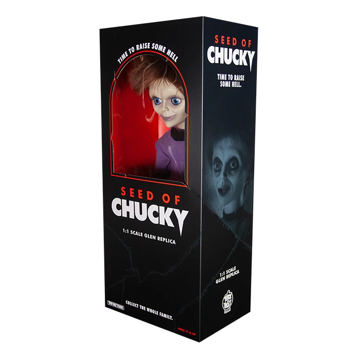 The Officially Licensed One-To-One Scale Seed of Chucky Glen Doll is the most screen accurate Glen Doll ever produced. This Doll was developed by Tony Gardner and Alterian Inc. the company responsible for making the actual screen used Doll! Every detail of this Doll comes directly from the actual screen used molds, including the clothing which were replicated using screen used swatches and the shoes.
