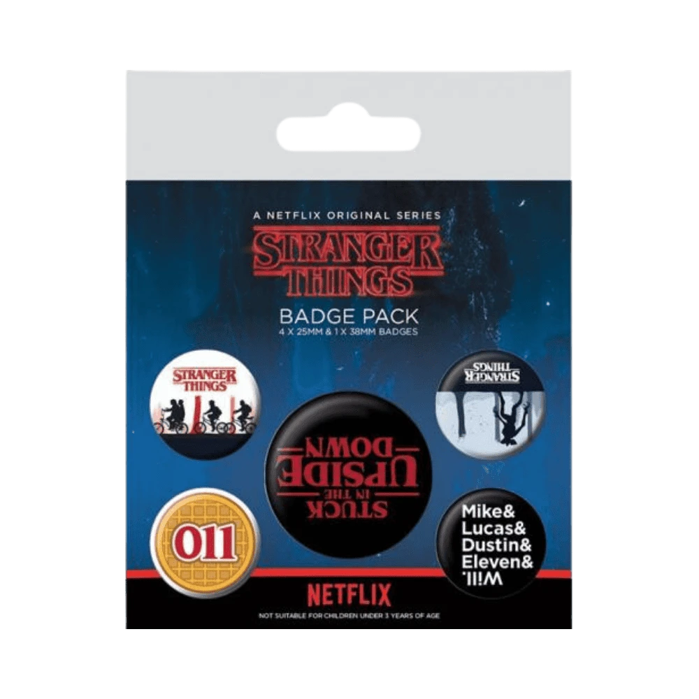 Unleash your inner fan with this STRANGER THINGS UPSIDE DOWN badge pack by Pyramid. Featuring four unique badges, each with a design inspired by the hit show, this pack is perfect for accessorizing your backpack, jacket, or any other item you desire. Show off your love for STRANGER THINGS and add some fun to your style!
